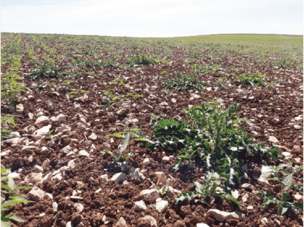 Il existe une grande diversité de « chardons ». Le plus concurrentiel en grande culture est le chardon des champs (Cirsium arvense). Le chardon se développe dans tous types de sol mais préférentiellement dans les sols nus, riches en azote, frais et plutôt argileux. Il est une excellente plante bioindicatrice d’un tassement de sol.