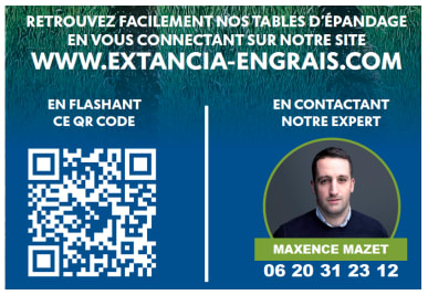 - Accédez aux tables d'épandage : Retrouvez facilement tous les réglages de votre semoir en vous connectant sur notre site dédié : www.extancia-engrais.com